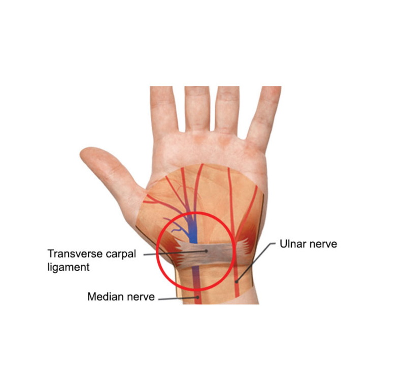 Zapestni sklep je sestavljen iz več kosti, vključno s karpalnimi kostmi. Te kosti tvorijo predoru podobno strukturo, imenovano karpalni kanal, ki je obložen z vezmi. Srednji živec teče skozi ta tunel skupaj s kitami, ki pomagajo premikati prste.